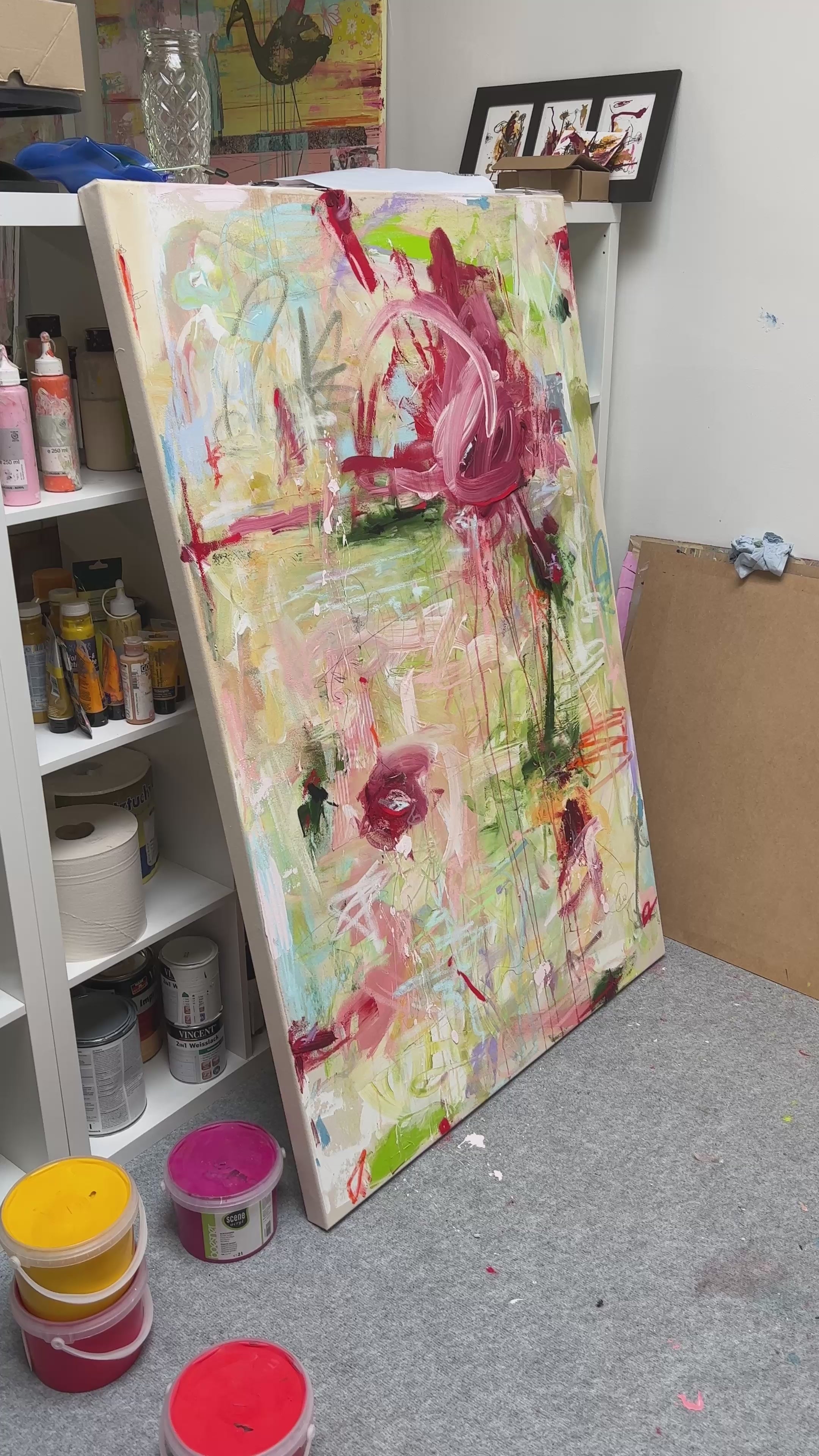 „Nothing Wrong With That“ ist ein kraftvolles, emotional aufgeladenes abstraktes Gemälde, das Freiheit, Bewegung und Ausdruckstiefe feiert. Schichten aus tiefem Karminrot, zarten Pastelltönen und erdigen Grüntönen verschmelzen zu einer dynamischen, zugleich ausgewogenen Komposition. Rohe Pinselstriche und feine Farbläufe spiegeln Spontaneität wider und laden dazu ein, die Schönheit von Unvollkommenheit und Echtheit zu entdecken.